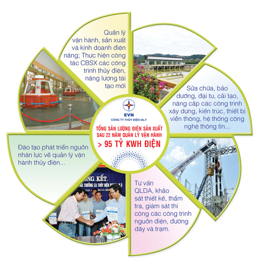1. Quản lý vận hành an toàn liên tục, cung cấp cho hệ thống điện quốc gia hơn 95 tỷ kWh điện.
