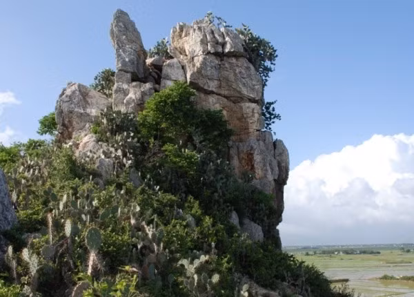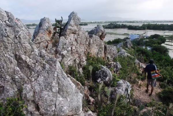 | Toàn cảnh núi Xương Cá nhìn từ hướng đông của thôn Lộc Hạ. |
