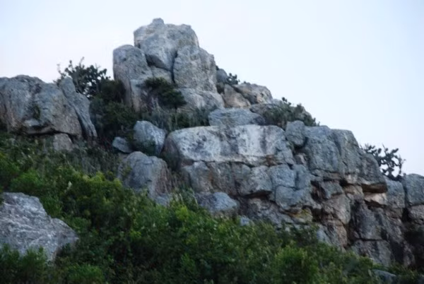 Đỉnh ở phần đuôi là hai hòn đá nhọn song đôi và phía dưới là những khối đá xếp chồng nhau như một bức tường thành, trông rất ấn tượng. Bên sườn đỉnh, một chú dê nằm nghỉ ngơi trên mỏm đá, khiến cho khung cảnh tĩnh lặng trở nên thi vị hơn.