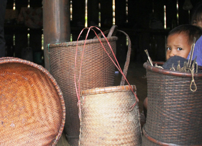 Tạt vào một nhà dân, chúng tôi chứng kiến nhiều vật dụng làm ra từ tre khổng lồ. Gùi đựng gạo, ống đựng nước, bát ăn cơm, mũi tên, mõ và thậm chí làm gối ngủ. “Ngay từ nhỏ, bọn mình đã được cha ông dẫn vào rừng để biết về những cây tre khổng lồ này. Những đồ vật trong nhà được làm ra từ tre khổng lồ đều rất quý hiếm, lâu hỏng nên được gìn giữ rất cẩn thận. Tre khổng lồ cũng từng “cứu” cho biết bao người dân. Trước đây, làng Long Riêu còn khó khăn, để chống lại cái đói người dân lại vào rừng chặt măng mang về ăn”, bà Hồ Thị Hiếu (nóc Long Riêu) chia sẻ.