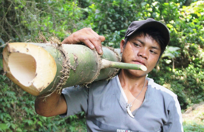 Già làng Hồ Văn Thạch đón khách lạ với ánh nhìn xét nét. Sau khi biết chúng tôi chủ yếu dò tìm câu chuyện gắn liền với những cây tre khổng lồ, người có uy tín nhất bản mới rít mạnh hơi thuốc, cười bảo: “Các chú tìm đúng người rồi đấy. Cả tỉnh Quảng Nam này, tre khổng lồ thì chỉ mình nóc Long Riêu này có thôi. Bấy lâu nay, làng mình không muốn người lạ biết về nó nên giấu kỹ lắm. Nếu người ta biết rồi đến chặt phá thì khác gì dân chúng tôi mất đi báu vật của làng”.