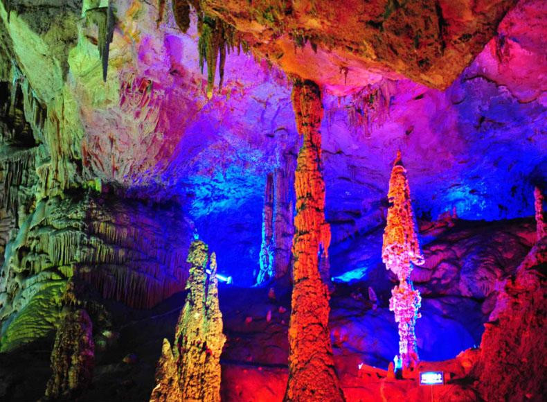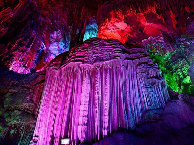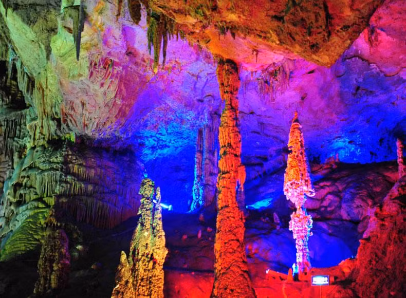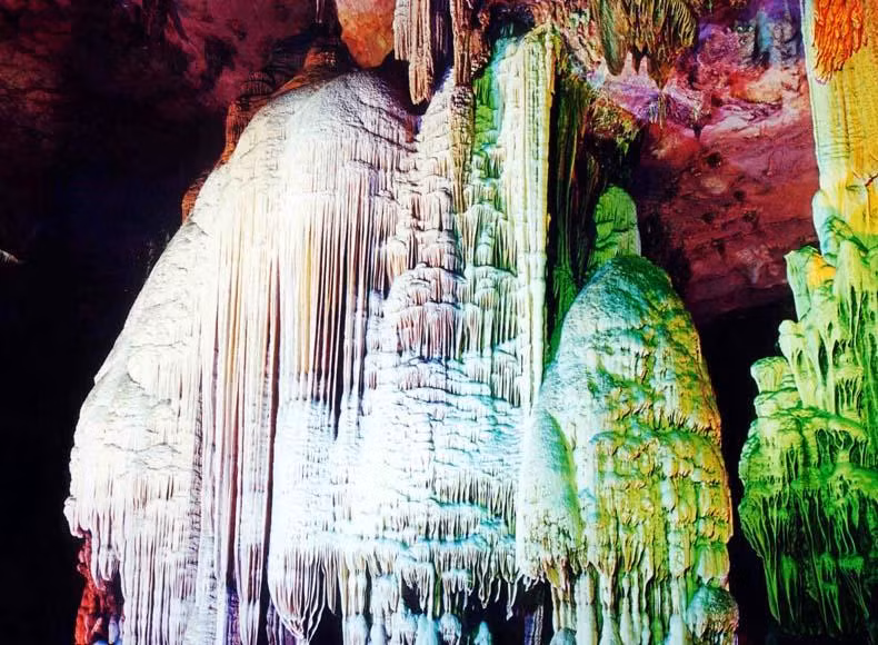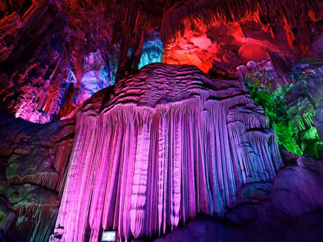 Được mệnh danh là hang động nổi tiếng nhất, động Ngân Tử không chỉ mang vẻ đẹp thiên nhiên hùng vĩ mà còn trở nên lung linh hơn khi lên đèn vào buổi đêm.