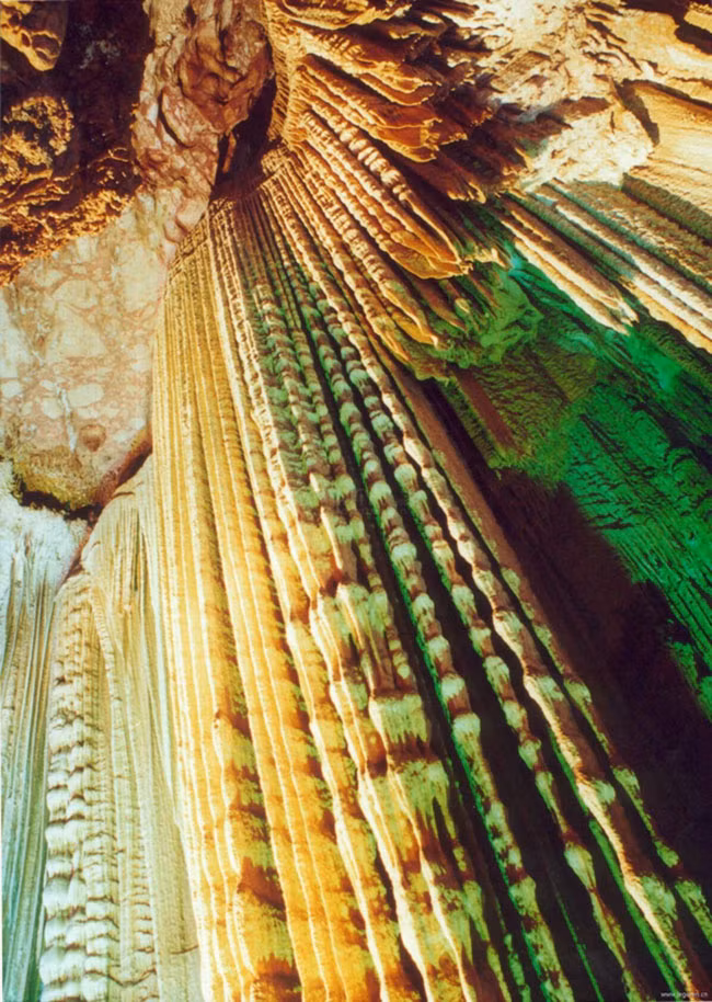 Nhạc cảnh: bao gồm nhiều màn rèm đá rũ xuống trông rất mong manh đầy vẻ nên thơ. Điều hoàn hảo hơn là khi nhẹ nhàng vỗ vào lớp rèm này sẽ có những âm thanh vang lên như một bản nhạc du dương. Vì thế kỳ quan này có tên gọi là “nhạc cảnh”.