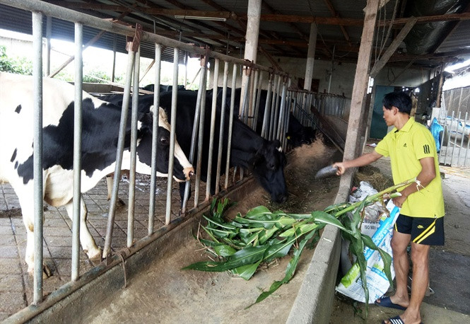 Gia đình anh Phạm Văn Chất (xã Liên Hiệp, huyện Đức Trọng, Lâm Đồng) chuyển qua nuôi bò lấy sữa sau khi đàn heo nhiễm dịch tả Châu Phi. Ảnh: Kim Sơ.