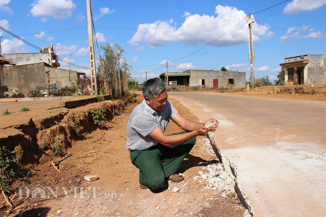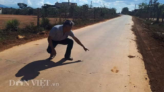 Ông Dương Văn Ba – Chủ tịch Hội Cựu chiến binh thôn Đạ Dâng cho biết: “Công trình giao thông nông thôn này được đầu tư từ nguồn vốn đối ứng. Trong đó ngân sách huyện là 2,3 tỷ đồng, còn lại 400 triệu do người dân đóng góp. Thứ nhất mỗi hộ gia đình sẽ đóng 2 triệu đồng, sau đó dựa vào diện tích vườn của mỗi nhà đóng thêm 100.000 đồng/sào. Hiện nay, khi chưa được 3 tháng công trình hoàn thành thì đường đã bị nứt rất nhiều và chất lượng bê tông không tốt”.