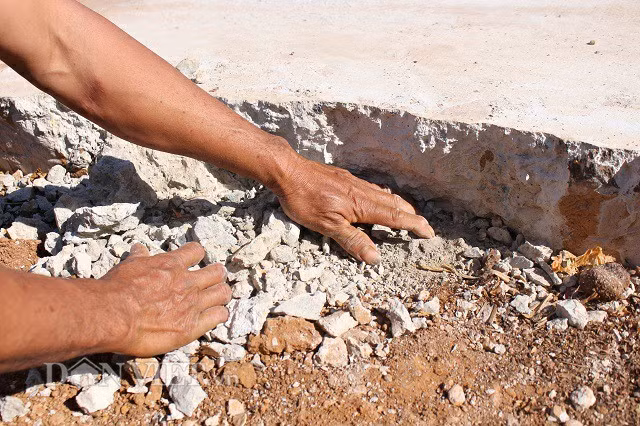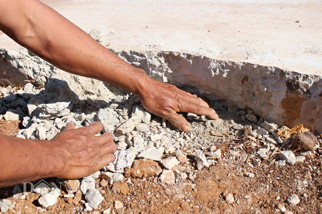 Những miếng bê tông người dân có thể dùng tay bẻ gãy. Ảnh: Văn Long.