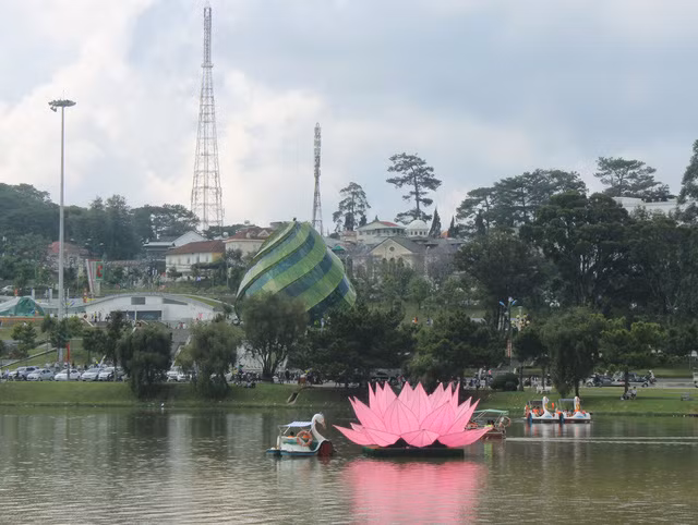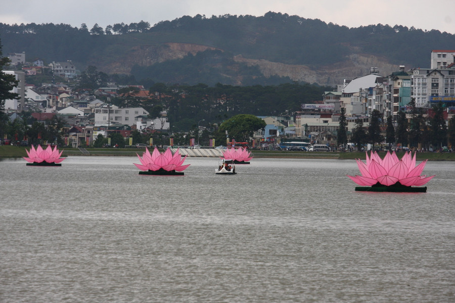 7 đài sen khổng lồ, mỗi bông cao 3,7 mét với đường kính 7,5 mét đã được hạ thủy thành công xuống hồ Xuân Hương (TP. Đà Lạt), chào mừng Đại lễ Phật đản.