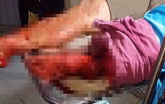 Hậu quả, anh T. bị chém gần đứt lìa cẳng chân phải và bị chém một vết dài vào phần đùi phải.
