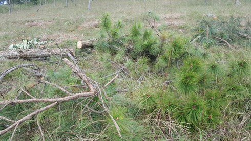 Theo ghi nhận tại hiện trường diện tích đất rừng bị tác động khoảng 1.250m2, nhiều cây thông bị hạ có đường kính từ 20 – 30cm.