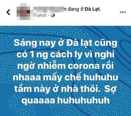 Một tài khoản facebook có tên Trang Nguyen đã đăng dòng trạng thái với nội dung sai sự thật là TP Đà Lạt (Lâm Đồng) đã có một người vừa bị nghi nhiễm virus Corona khiến nhiều người hoang mang lo lắng.
