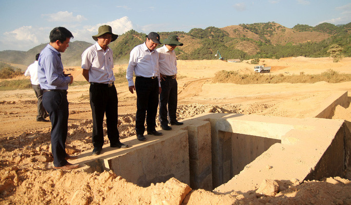 Ông Phạm S, Phó Chủ tịch UBND tỉnh Lâm Đồng, thị sát tiến trình thi công hồ thủy lợi Đạ Sỵ (huyện Cát Tiên). Ảnh: Đ.Thi
