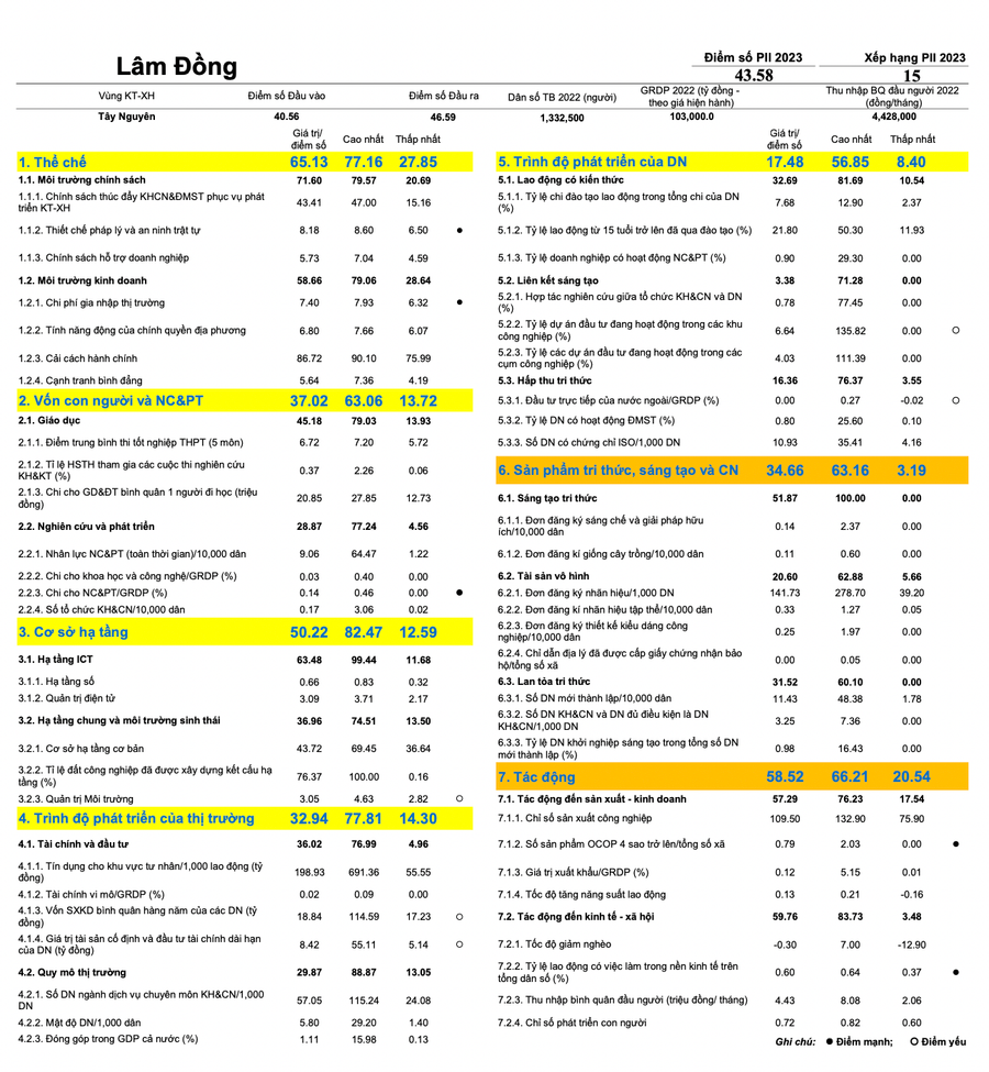 | Các chỉ số đổi mới sáng tạo tại Lâm Đồng do Bộ Khoa học và Công nghệ đánh giá |