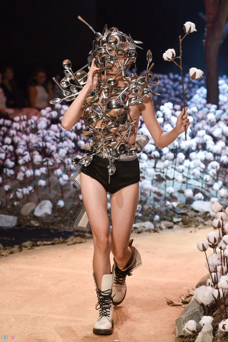 Tuy nhiên, trong bộ sưu tập lần này cũng xuất hiện vài mẫu trang phục khó hiểu, như chiếc áo của người mẫu Fung La được làm từ những chiếc muỗng inox.