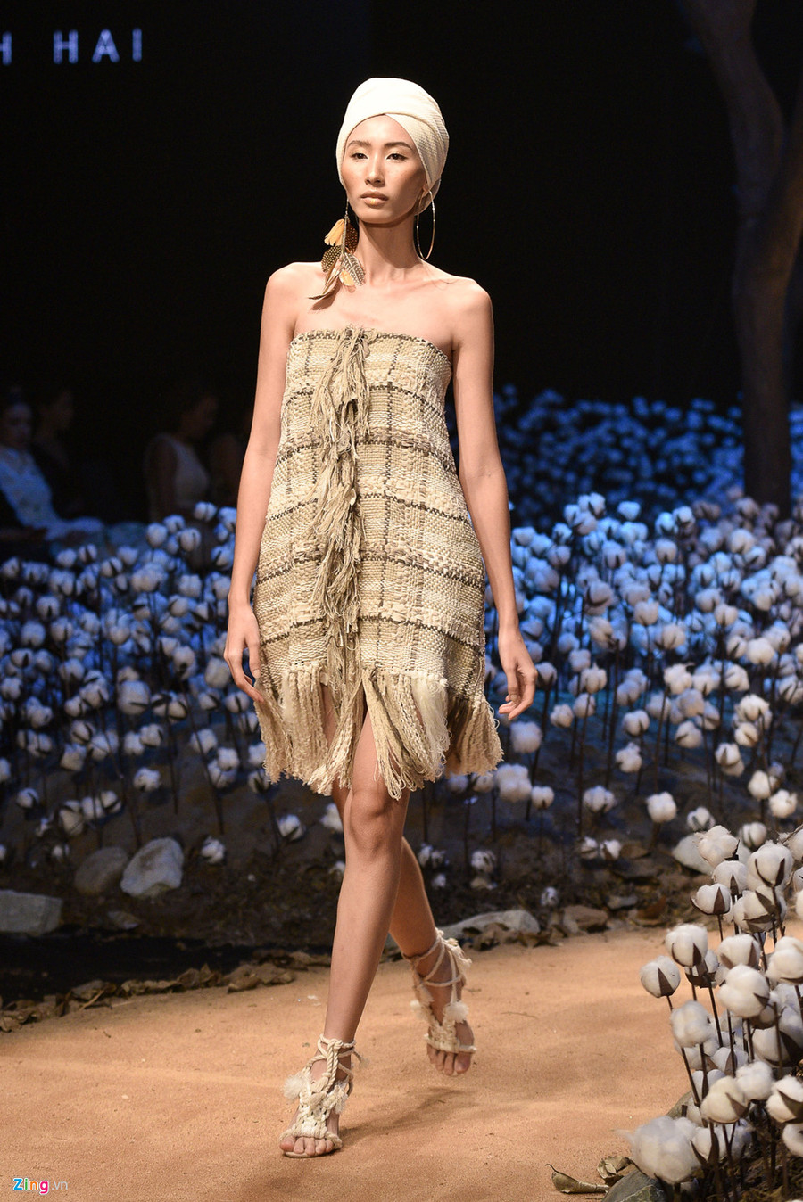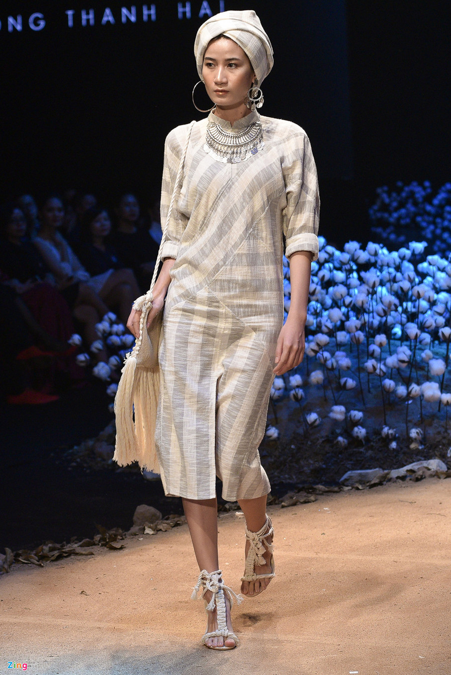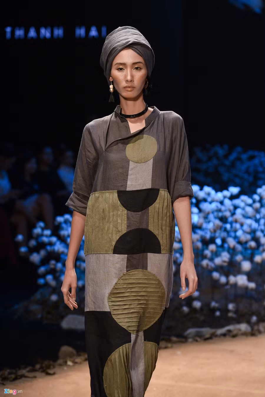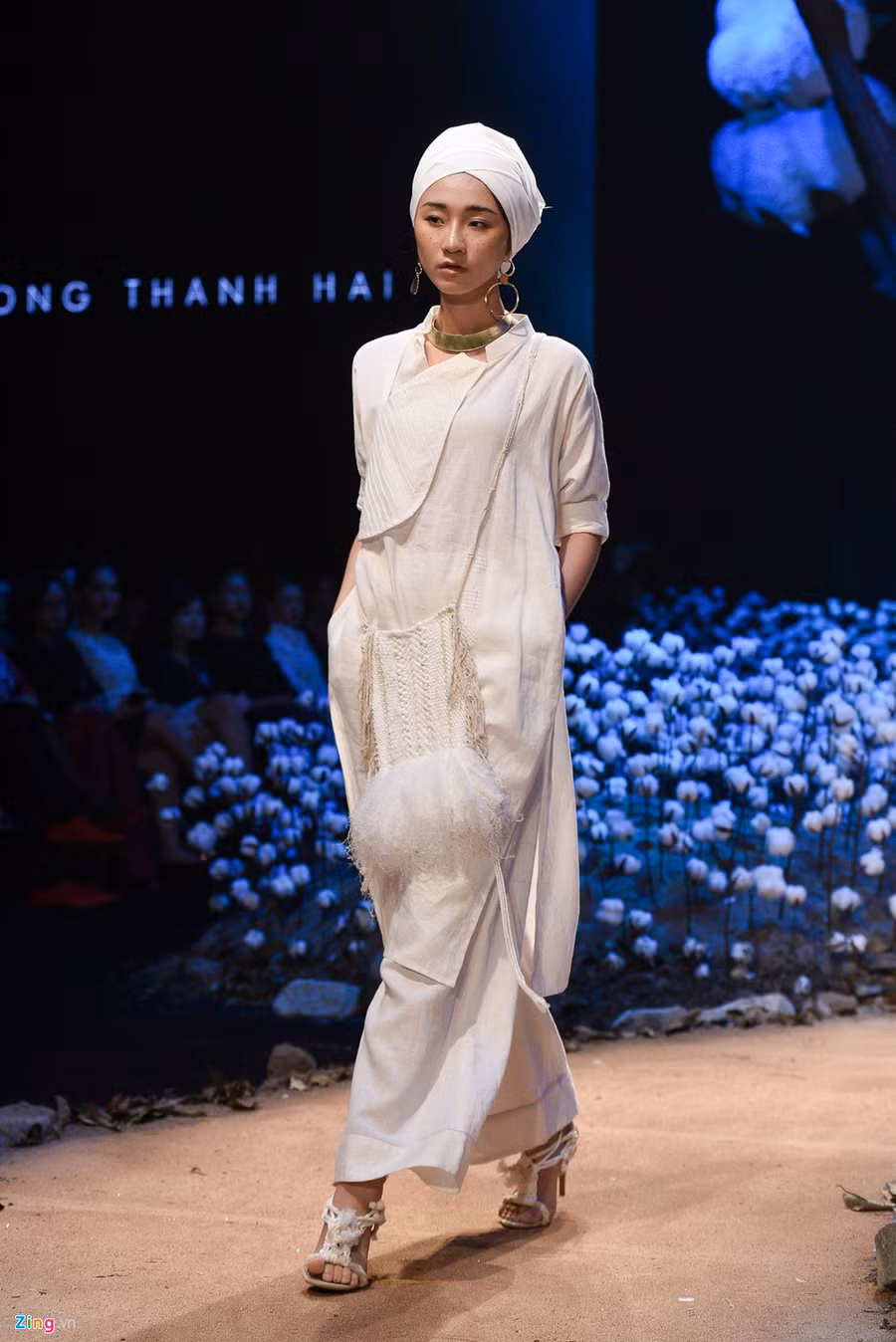 Trong show diễn lần này, giới mộ điệu cũng được chiêm ngưỡng bộ sưu tập đến từ NTK Trương Thanh Hải. Siêu mẫu Bằng Lăng tái xuất sàn diễn trong trang phục mang phom dáng suông đơn giản cùng chiếc khăn turban cổ điển.