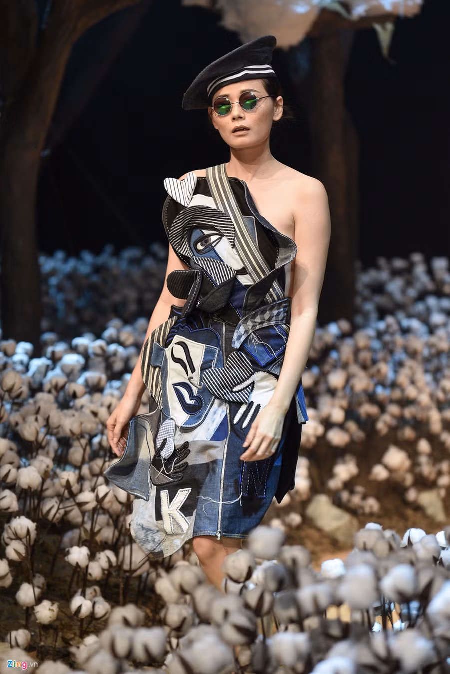 Các mảng màu denim khác nhau được tái tạo bằng kỹ thuật "tranh ghép vải" 3D, theo kết cấu chi tiết được nhà thiết kế nghiên cứu từ cảm xúc trên gương mặt của con người.