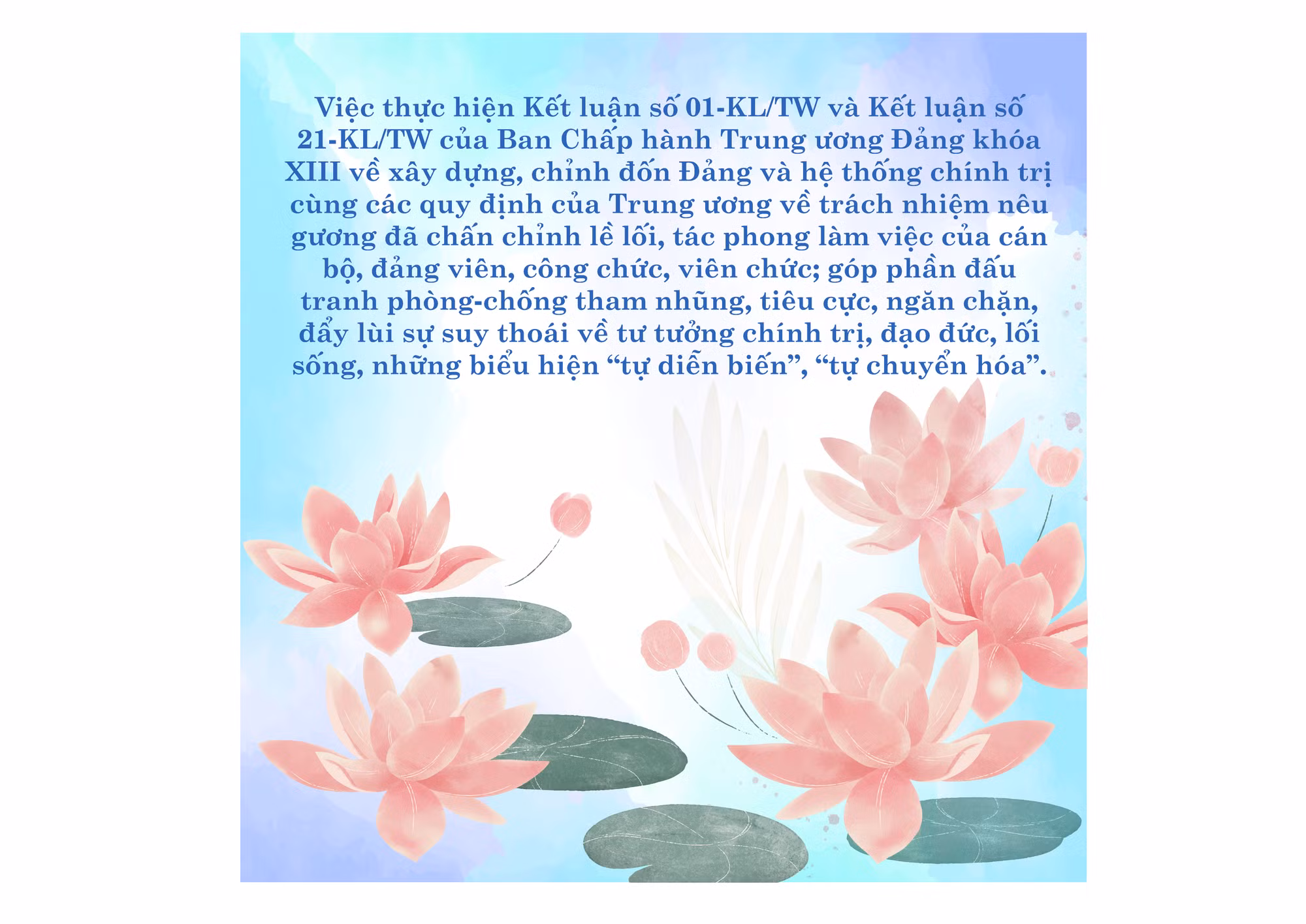 Ngày 7-11-2006, Bộ Chính trị khóa X đã ban hành Chỉ thị số 06-CT/TW về tổ chức cuộc vận động “Học tập và làm theo tấm gương đạo đức Hồ Chí Minh”. Mục đích là “làm cho toàn Đảng, toàn dân nhận thức sâu sắc về những nội dung cơ bản và giá trị to lớn của tư tưởng đạo đức và tấm gương đạo đức Hồ Chí Minh. Tạo chuyển biến mạnh mẽ về ý thức tu dưỡng, rèn luyện và làm theo tấm gương đạo đức Hồ Chí Minh sâu rộng trong toàn xã hội, đặc biệt trong cán bộ, đảng viên, công chức, viên chức, đoàn viên, thanh niên, học sinh... nâng cao đạo đức cách mạng, cần, kiệm, liêm, chính, chí công vô tư; đẩy lùi sự suy thoái về tư tưởng chính trị, đạo đức, lối sống và các tệ nạn xã hội, góp phần thực hiện thắng lợi Nghị quyết Đại hội X của Đảng”. Sau Chỉ thị số 06, Bộ Chính trị khóa XI tiếp tục ban hành Chỉ thị số 03-CT/TW ngày 14-5-2011 về tiếp tục đẩy mạnh việc học tập và làm theo tấm gương đạo đức Hồ Chí Minh; Bộ Chính trị khóa XII ban hành Chỉ thị số 05-CT/TW ngày 15-5-2016 về đẩy mạnh học tập và làm theo tư tưởng, đạo đức, phong cách Hồ Chí Minh. Đến năm 2021, Bộ Chính trị khóa XIII ban hành Kết luận số 01-KL/TW về tiếp tục thực hiện Chỉ thị số 05-CT/TW về đẩy mạnh học tập và làm theo tư tưởng, đạo đức, phong cách Hồ Chí Minh.