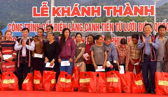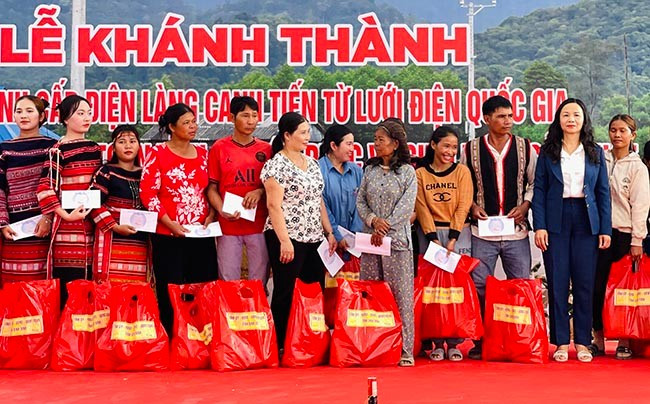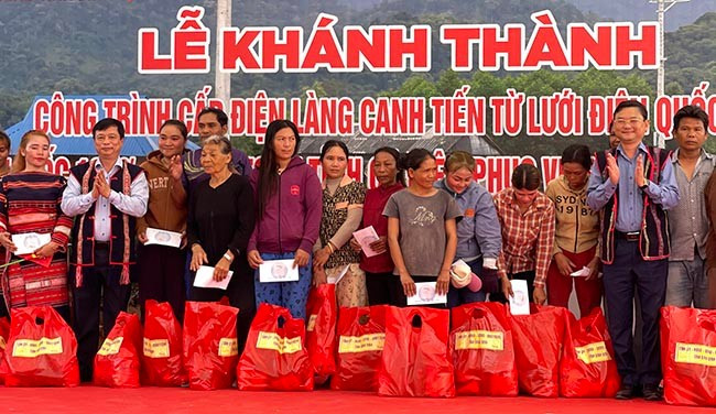 Dịp này, Tổng công ty Điện lực miền Trung hỗ trợ 40 triệu đồng cho Quỹ khuyến học của làng và hỗ trợ chi phí lắp đặt điện, dụng cụ bóng đèn, công tắc…cho các hộ trị giá 50 triệu đồng. UBND tỉnh tặng 180 suất quà cho toàn bộ hộ dân.