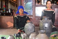 | Người M’nông làm thủ công các sản phẩm gốm. |