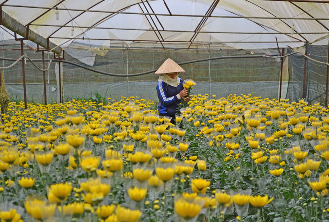 | Canh tác hoa cúc công nghệ cao ở làng hoa Hà Đông |