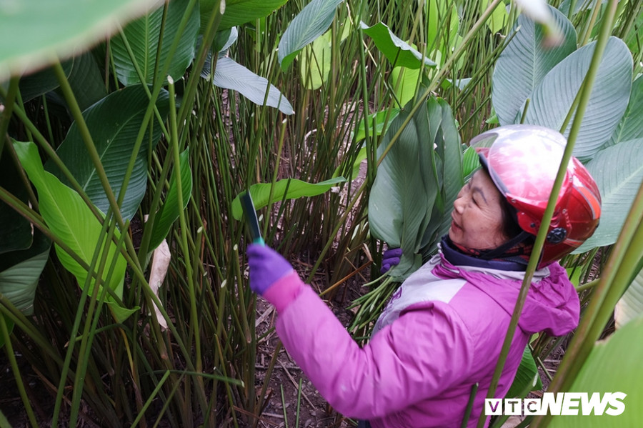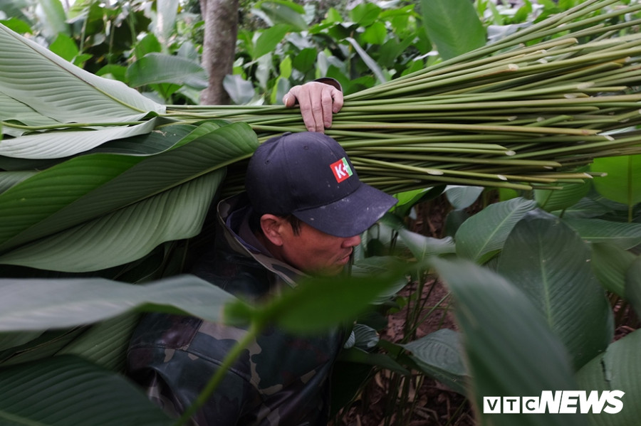 Những ngày này, người dân thôn Tràng Cát (xã Kim An, huyện Thanh Oai, Hà Nội) lại tất bật thu hoạch lá dong phục vụ nhu cầu gói bánh chưng ngày Tết.