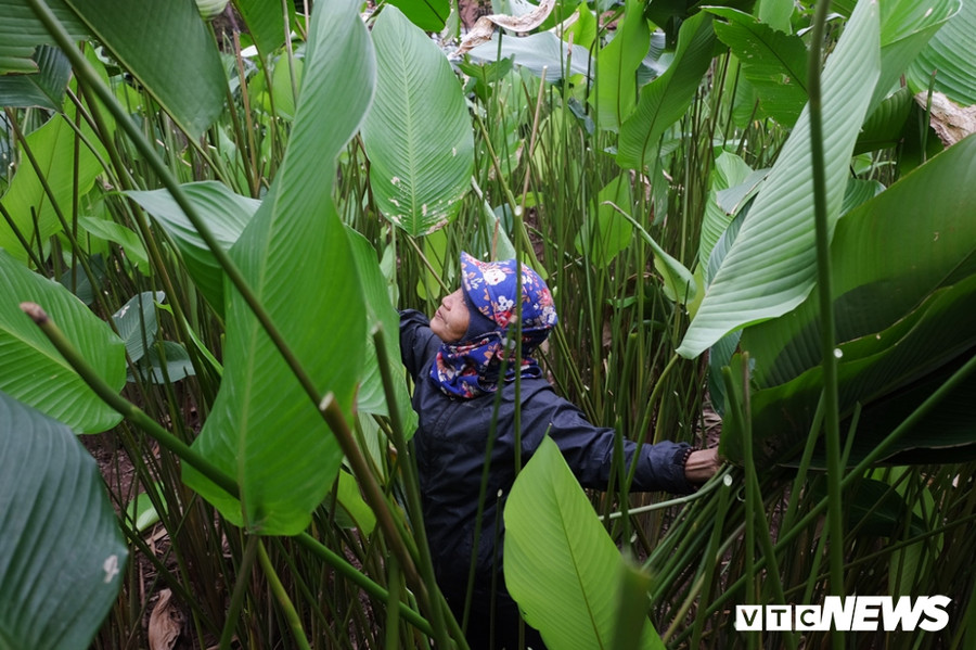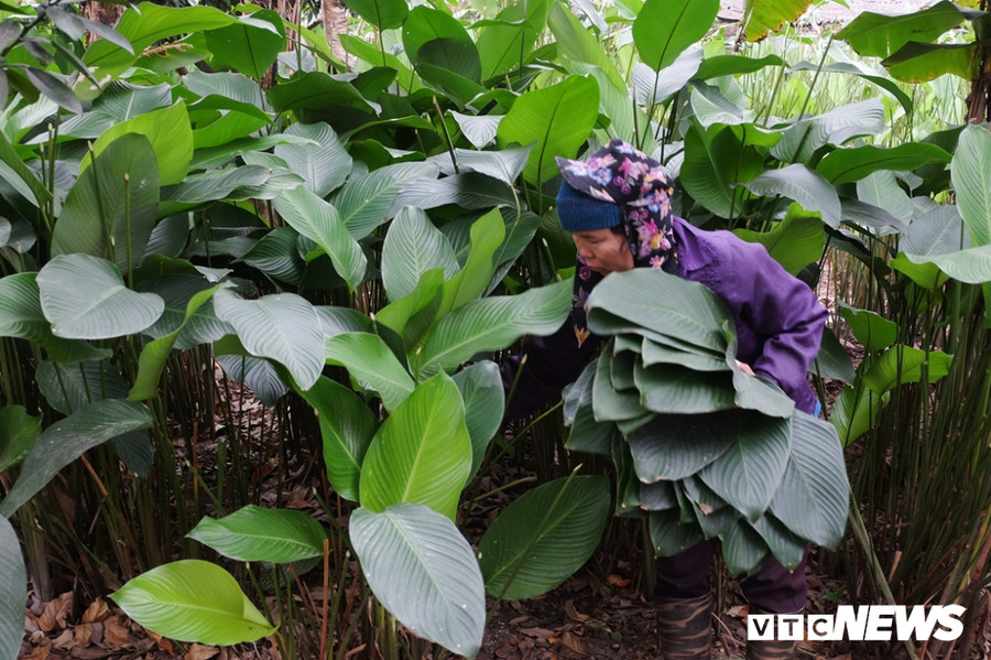 Năm nay, nhà cụ Nguyễn Thị Đấy (xã Kim An, huyện Thanh Oai) có 4 sào trồng lá dong, giúp thu về 50 triệu đồng. "Mình chỉ việc trồng thôi, còn lúc thu hoạch sẽ có người đến cắt. Năm nay, nhà tôi cắt được khoảng 8 vạn lá, thu về khoảng 50 triệu đồng", cụ Đấy phấn khởi cho biết.