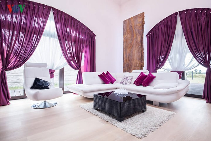 Màu tím là màu rất hiếm dùng trong kiến trúc - nội thất. Dẫu vậy, màu sắc này lại có sắc thái độc đáo: đó là nét nữ tính, lãng mạn.