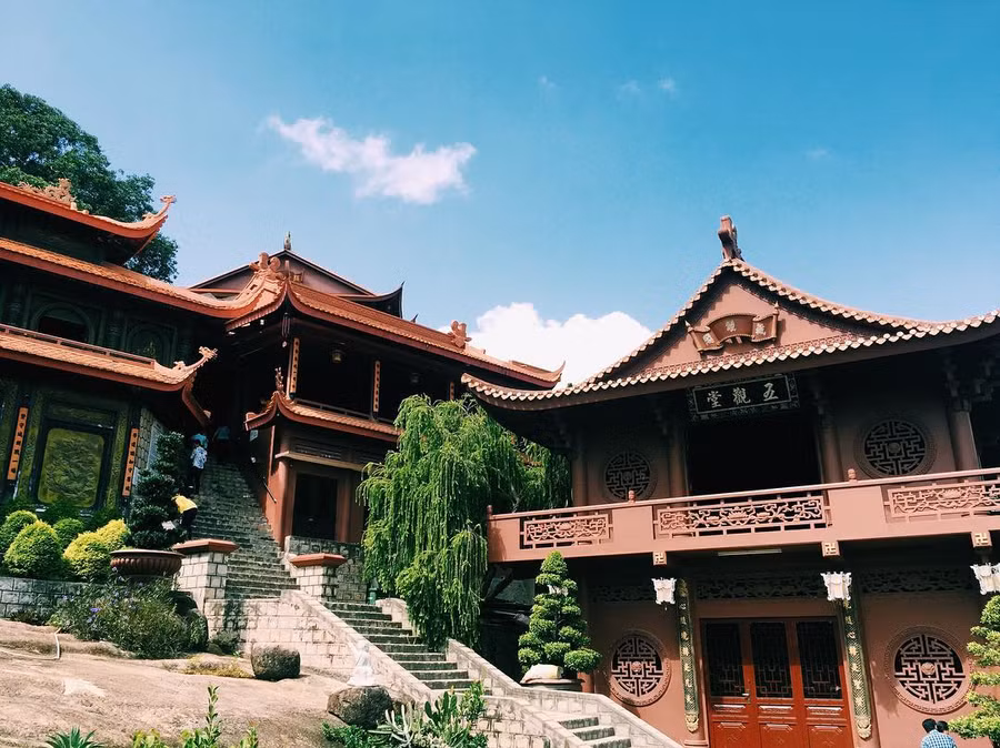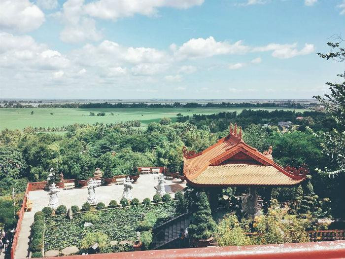 Chùa xây trên triền núi Sam nên rất thoáng mát, kiến trúc đẹp mắt. Đứng trên chùa phóng tầm mắt nhìn ra xa là thấy cả một vùng thành phố Châu Đốc đang thay da đổi thịt.
