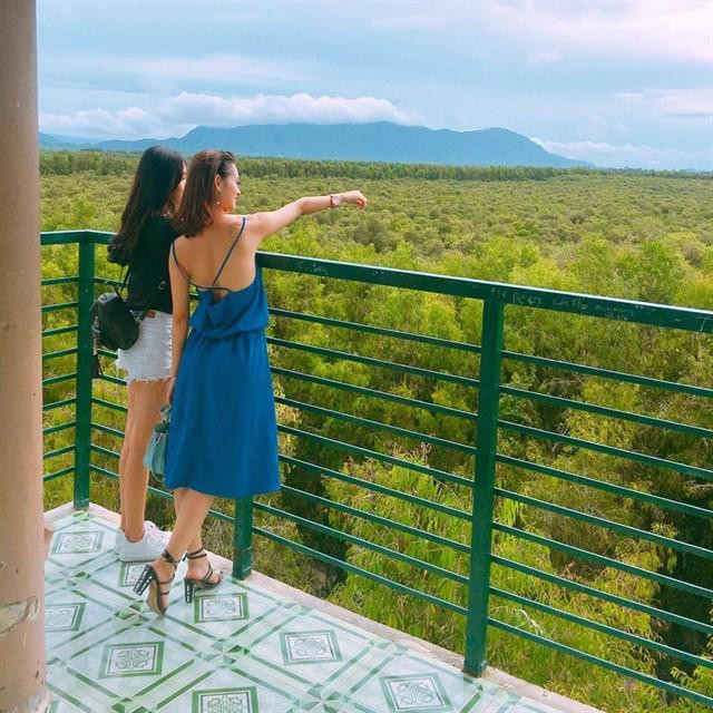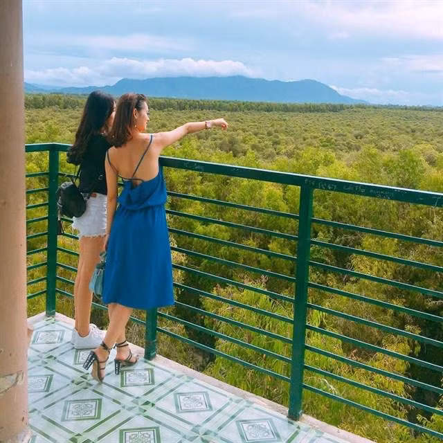 Sau khi ăn uống no say thì rảo bước lên tháp quan sát là một lựa chọn hợp lý. Trên tháp có ống kính quan sát, bạn có thể chiêm ngưỡng cả một vùng rừng tràm bao la, những bầy cò trắng, những đàn chim lũ lượt bay lượn. Thật là tiếc nếu như không lưu lại những khoảnh khắc tuyệt đẹp này với những shoot ảnh đẹp mê hồn.