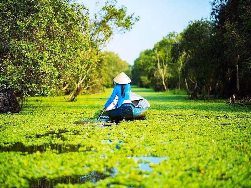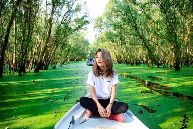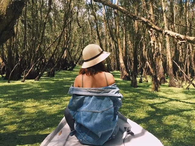 Đi miền Tây chơi các bạn đừng quên ghé rừng tràm Trà Sư, chạy xe máy đến đây mất khoảng 2h, sau đó bạn sẽ phải đi xuồng vào rừng tràm.
