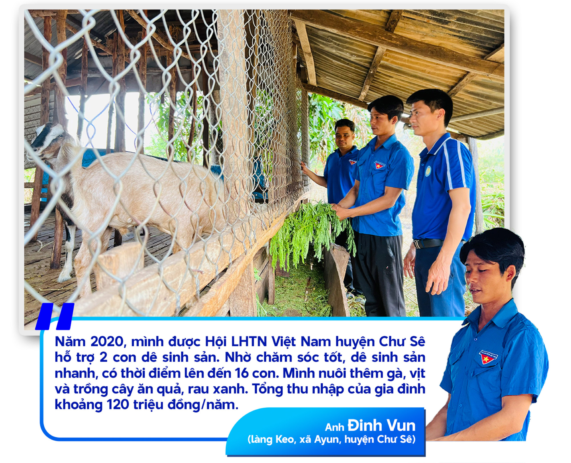 Mượn 1,4 ha đất từ quỹ đất trống của làng để thanh niên tham gia trồng cây ngắn ngày gây quỹ là cách làm được Chi hội Thanh niên làng Keo (xã Ayun, huyện Chư Sê) triển khai từ năm 2018 đến nay. Bình quân mỗi năm, Chi hội gây quỹ khoảng 20-25 triệu đồng. Năm 2021, Chi hội sử dụng nguồn quỹ mua 1 bộ cồng chiêng trị giá 40 triệu đồng để phục vụ các hoạt động văn hóa-văn nghệ. Đồng thời, mua 900 m2 đất trống trong làng đầu tư làm sân bóng đá mini, sân bóng chuyền, lắp điện năng lượng mặt trời, tạo không gian vui chơi, sinh hoạt cho thanh thiếu nhi.