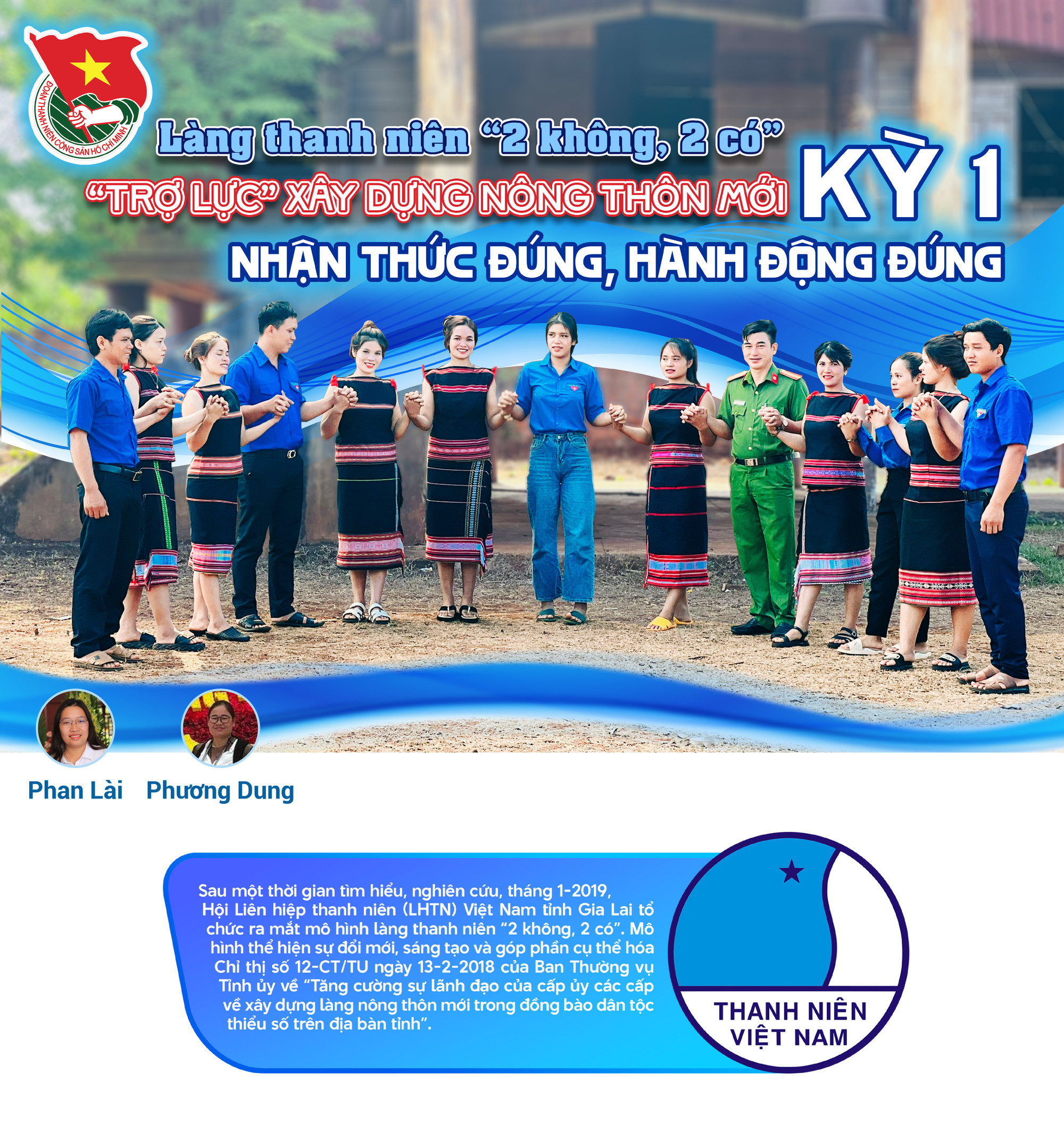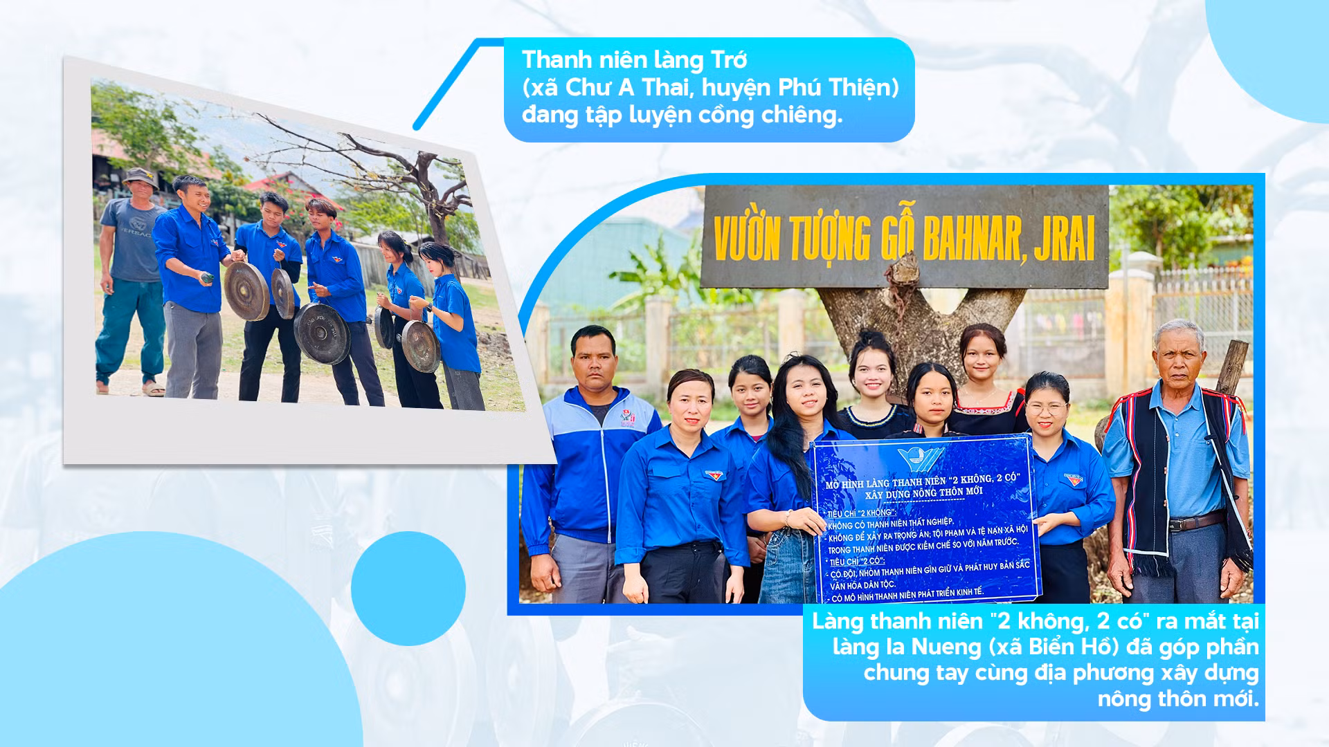 Nhằm khắc phục thực trạng này, tháng 1-2019, Hội LHTN Việt Nam tỉnh lựa chọn làng Trớ (xã Chư A Thai, huyện Phú Thiện) và làng Ia Nueng (xã Biển Hồ, TP. Pleiku) triển khai mô hình điểm. Làng Trớ là làng đặc biệt khó khăn, hơn 98% dân số là người dân tộc thiểu số. Làng có đội cồng chiêng song chủ yếu do người lớn tuổi thực hành. Làng có mô hình phát triển kinh tế của thanh niên nhưng hiệu quả chưa cao, thiếu tính bền vững. Nhiều thanh niên không có việc làm ổn định, thường tụ tập uống rượu, quậy phá. Còn làng Ia Nueng có hơn 96% dân số là người Jrai, đời sống có phần thuận lợi hơn. Thanh niên trong làng đã chủ động tiếp cận với khoa học công nghệ, mạnh dạn trong phát triển kinh tế. Làng chưa thành lập riêng đội cồng chiêng nhưng duy trì 1 đội xoang.
