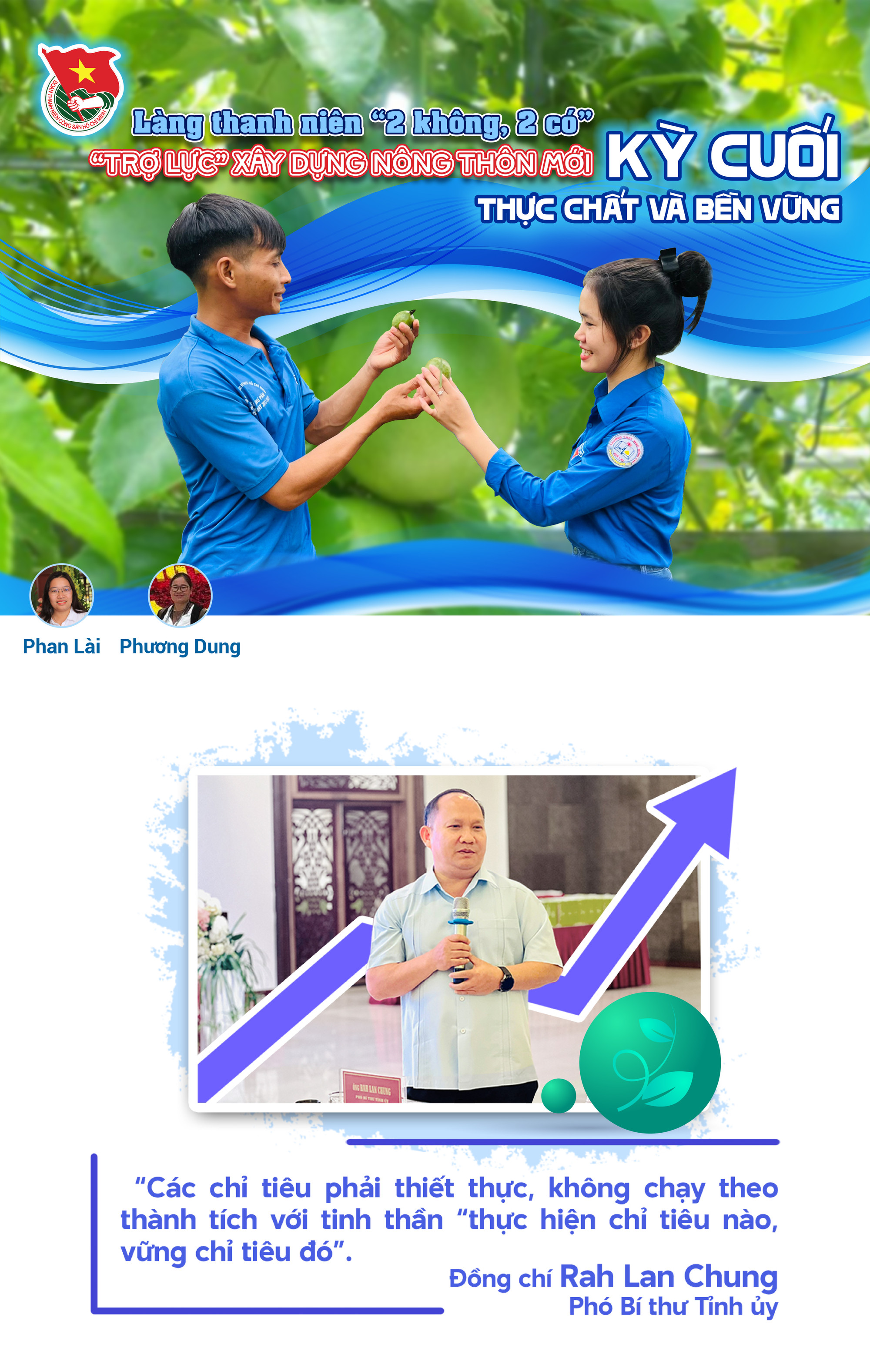 Để nâng cao hiệu quả mô hình làng thanh niên “2 không, 2 có”, Phó Bí thư Tỉnh ủy Rah Lan Chung cho rằng, Hội LHTN Việt Nam các cấp cần xác định rõ việc thực hiện mô hình là nhiệm vụ thường xuyên và phải phù hợp với tình hình thực tế của từng địa phương. Tổ chức Hội các cấp đẩy mạnh tuyên truyền để nâng cao nhận thức, giúp thanh niên vùng đồng bào DTTS thay đổi nếp nghĩ, cách làm, tự lực vươn lên thoát nghèo và làm giàu chính đáng. Phát huy đầy đủ vai trò “thủ lĩnh” thanh niên. Bên cạnh đó, Ủy ban Hội LHTN Việt Nam các cấp cần chủ động, sáng tạo hơn nữa trong huy động nguồn lực xã hội hóa, trao tặng mô hình sinh kế cho thanh niên; phát huy hiệu quả đội ngũ trí thức trẻ trong việc hướng dẫn khoa học kỹ thuật sản xuất cho thanh niên người DTTS; tạo sân chơi lành mạnh, bổ ích để tập hợp, thu hút thanh niên tham gia... Phó Bí thư Tỉnh ủy nhấn mạnh, cấp ủy, chính quyền các cấp tăng cường lãnh đạo, chỉ đạo để mô hình ngày càng nhân rộng và phát huy hiệu quả.
