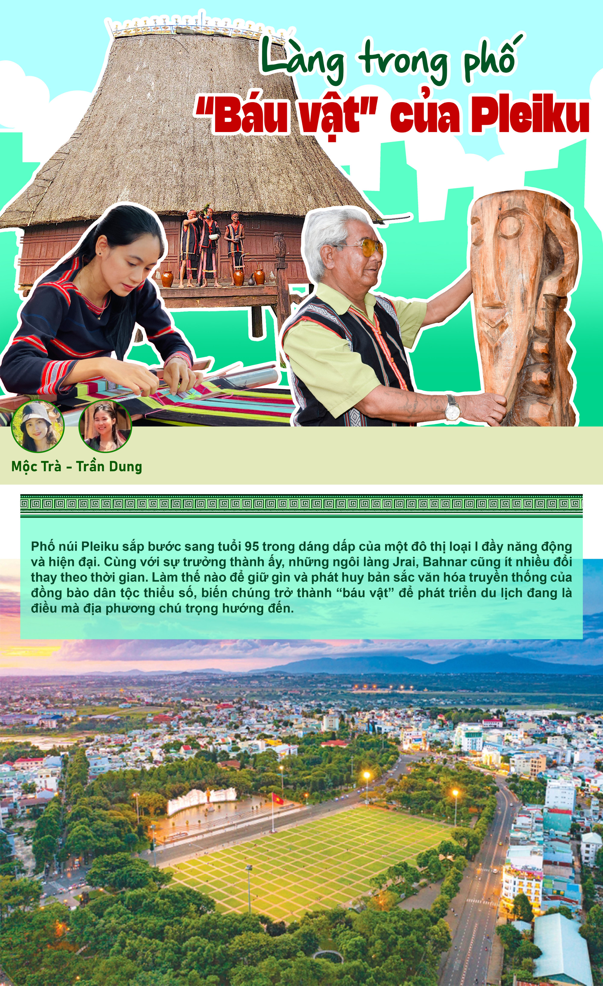 Thành phố Pleiku hiện có 37 làng dân tộc thiểu số thuộc 14/22 xã, phường; nhiều ngôi làng vẫn còn giữ được những nét văn hóa độc đáo. Và quả thật không ngoa khi nói rằng, đó chính là “báu vật” trong phát triển du lịch ở phố núi Pleiku gắn với cộng đồng làng.