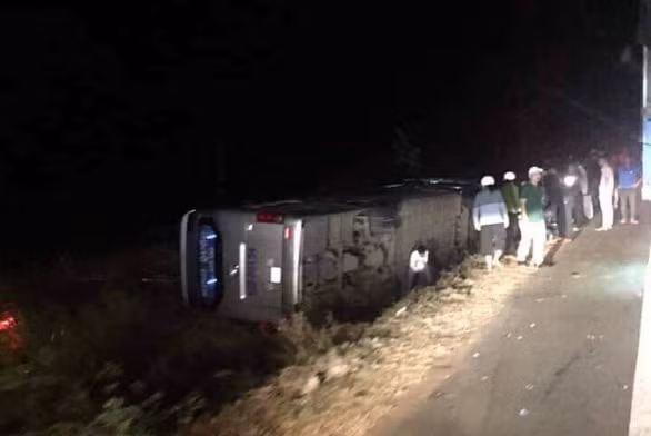 Vụ lật xe khách trên quốc lộ 14 xảy ra vào khoảng 21h tối 16-1 trên quốc lộ 14 đoạn qua xã Ea H'Leo, huyện Ea H'Leo, Đắk Lắk.