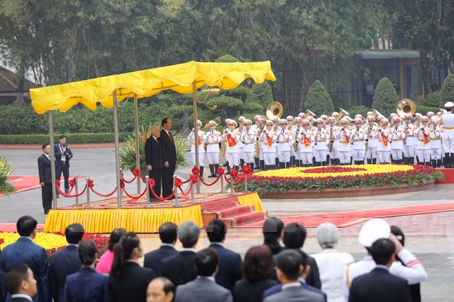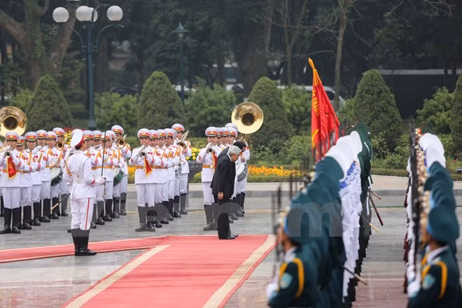 Toàn cảnh lễ đón Nhà vua và Hoàng hậu Nhật Bản tại Phủ Chủ tịch (Ảnh: Minh Sơn/Vietnam+):