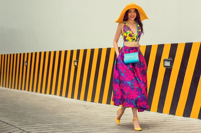 Trong bộ ảnh dạo phố, Á hậu Lệ Hằng chọn những thiết kế màu sắc nổi bật trong bộ sưu tập Life in Color.