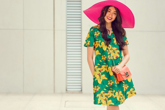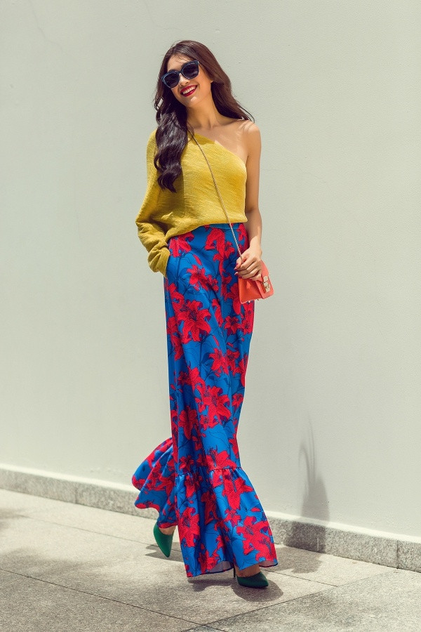 Á hậu Hoàn vũ Việt Nam 2015 khoe street style với các thiết kế màu sắc của Đỗ Mạnh Cường.