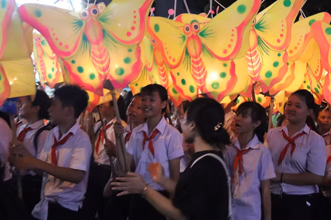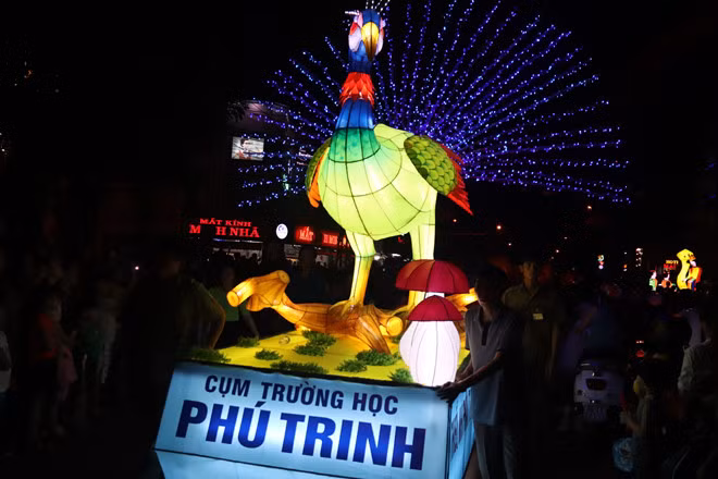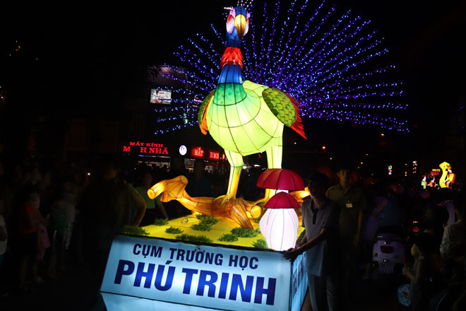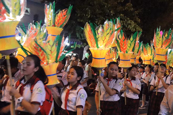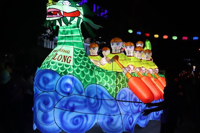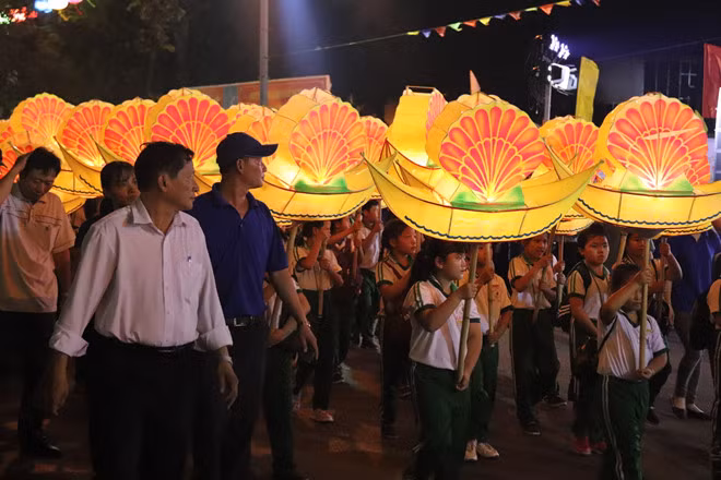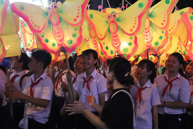 Tối 11-9, lễ hội rước đèn trung thu của TP.Phan Thiết (Bình Thuận) diễn ra với sự tham gia của 18 phường xã và hàng nghìn học sinh.