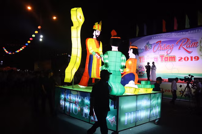 Đèn trung thu năm nay với nhiều biểu tượng đặc thù của quê hương Bình Thuận, như biểu tượng con sò, Tháp nước Phan Thiết, chủ quyền Trường Sa - Hoàng Sa của Việt Nam, con tàu vươn khơi đánh cá, trái thanh long… Lễ hội thu hút hàng nghìn người dân và du khách đến xem.