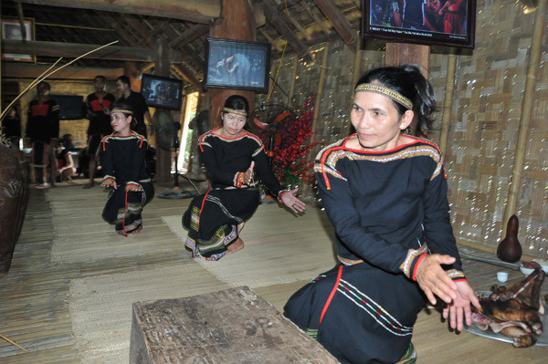 Cùng những làn điệu công chiêng, các cô gái Ê Đê mang tới không gian Lễ hội những điệu múa đậm đà bản sắc của dân tộc mình.