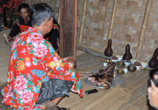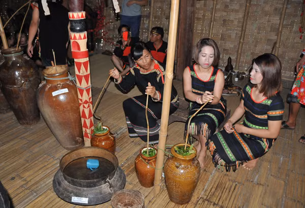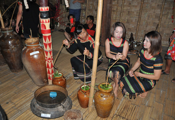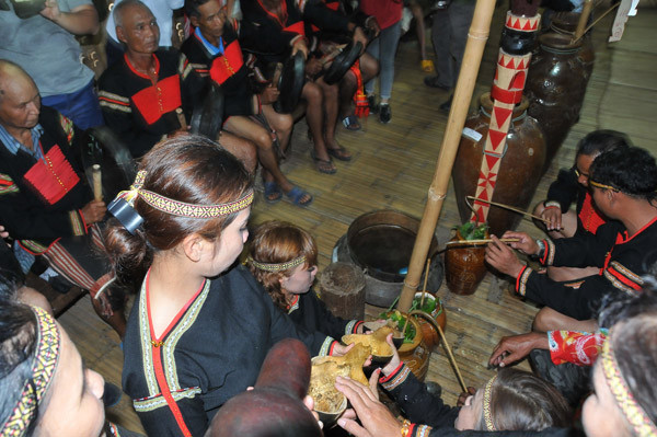 Mọi người tham gia nghi lễ cùng thưởng thức rượu cần.