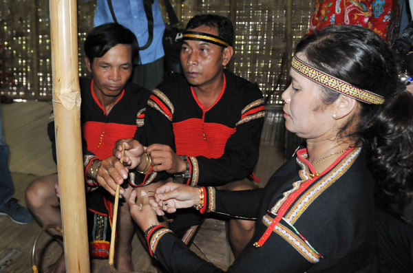 Nghi thức trao vòng cho 2 người tham gia kết nghĩa.
