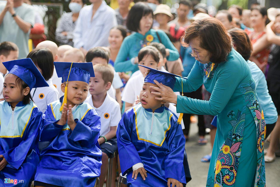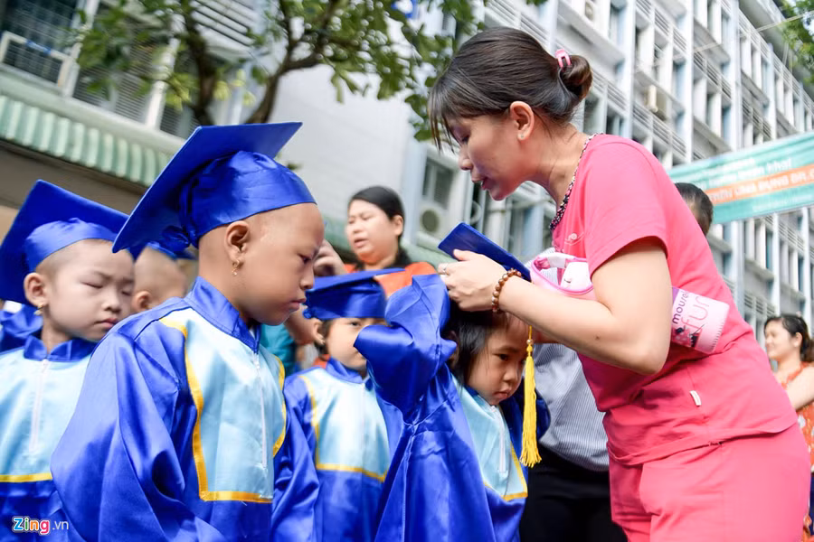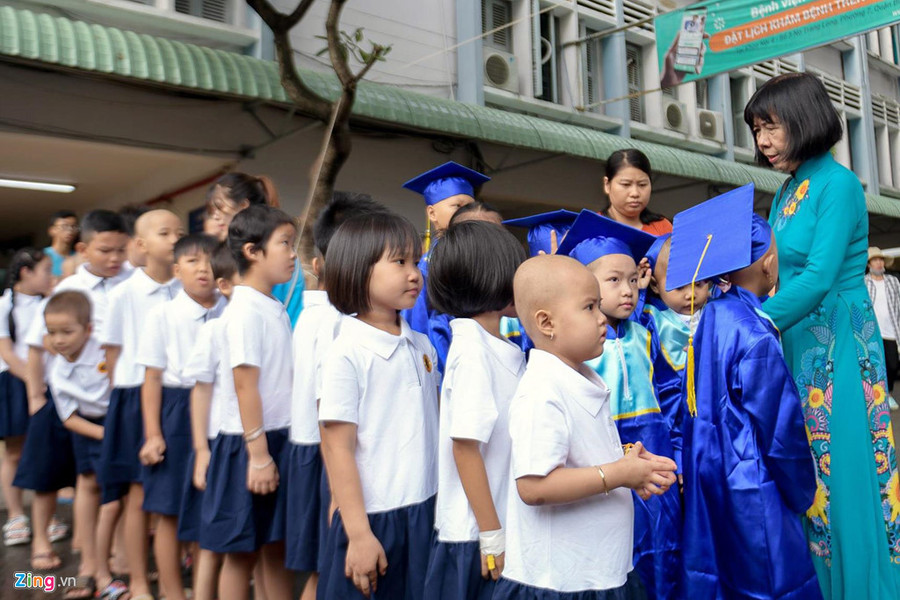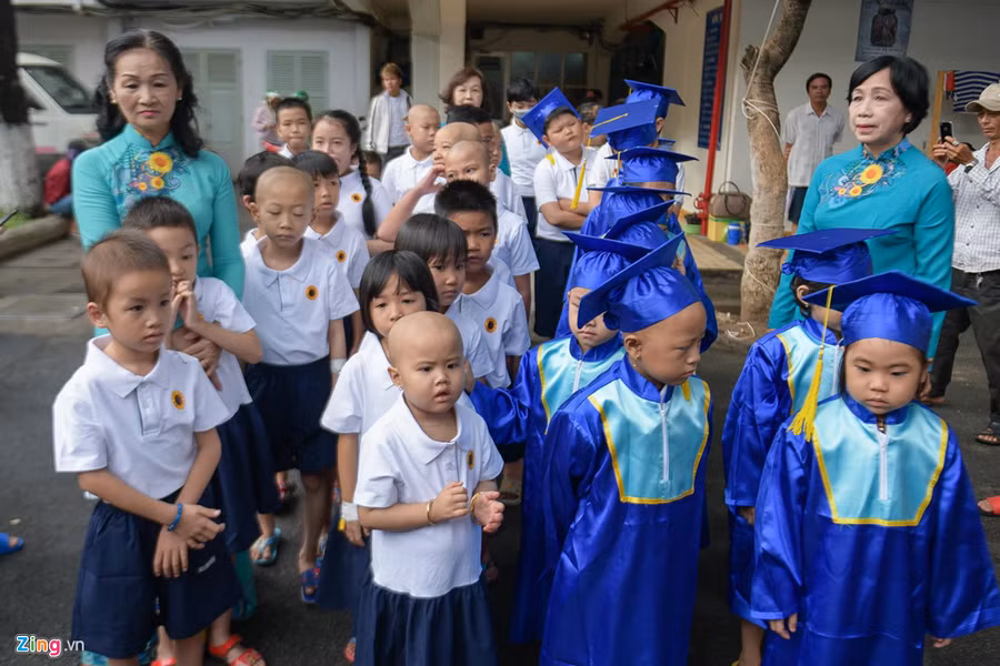 Lễ khai giảng có sự tham gia của 50 học sinh, phụ huynh cùng 10 giáo viên và các tình nguyện viên, lãnh đạo bệnh viện. Nhiều em tay còn ghim kim, đi phải chống nạng hoặc có người dìu, do sức khỏe giảm sút và trải qua quá trình điều trị đau đớn.
