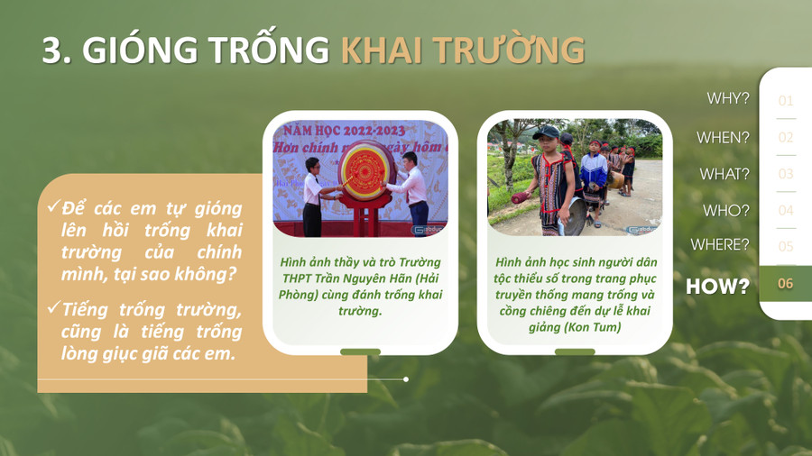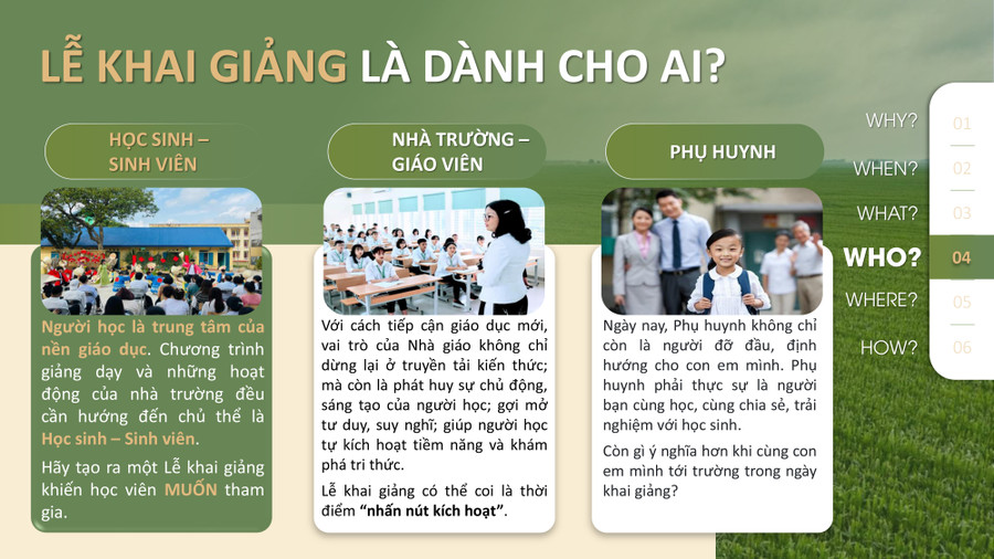 (GLO)- Buổi lễ khai giảng là mốc thời gian đánh dấu sự khởi đầu chính thức của năm học mới, giúp học sinh, sinh viên và giáo viên chuyển đời từ thời gian nghỉ hè sang thời gian học tập một cách rõ ràng và có động lực; mở ra một hành trình gieo trồng và kiến tạo tương lai.