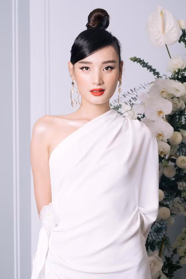 Diện chiếc váy trắng tinh khôi, trang điểm nhẹ nhàng, đôi môi đỏ mọng và kiểu búi tóc gọn gàng, Lê Thúy trông cực kỳ tinh tế và quyến rũ.