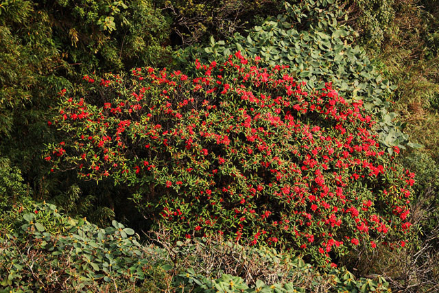 Từ trên cabin cáp treo, bạn sẽ thấy mình giống như đang bay lướt qua núi rừng hùng vĩ, và giữa thảm xanh của rừng là những vòm hoa đỗ quyên đủ màu sắc, từ đỏ, hồng, vàng, tím cho đến trắng. Bức tranh ấy, ngoài mẹ thiên nhiên, không họa sỹ nào vẽ nổi.