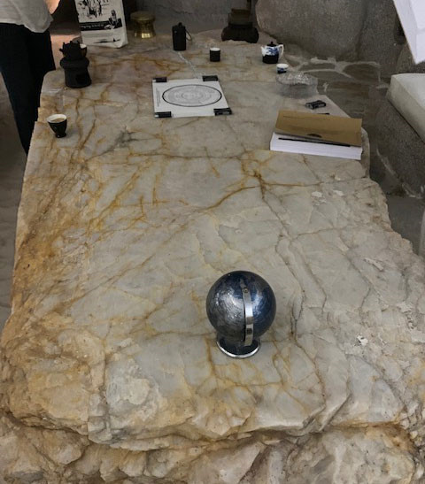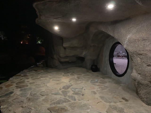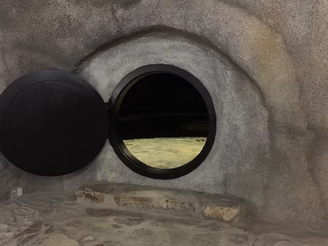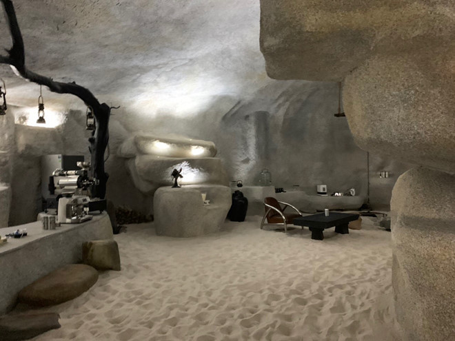 Khác hẳn với bóng tối hoang mạc ở bên ngoài, phía bên trong ánh sáng chan hòa khắp hang. Chân tôi lún sâu dưới cát, mát lạnh (tôi được nhắc nhở bỏ dép bên ngoài từ trước). Nền hang rải ngập cát, ở giữa có mấy phiến đá xếp chồng lên nhau, tạo thành một cột đá lớn gồ ghề. Một chiếc bàn đá dài đặt kế thành hang, trên để một số dụng cụ, tôi nhìn không rõ. Những chiếc đèn bão kiểu cổ được móc vào một thân cây giả màu đen, hình như làm bằng kim loại buông lơ lửng giữa phía trên. Kế đó là vết khoét lõm nhẹ vào nền hang làm bếp, bên trong chất đầy than nhưng không đốt. Một sợi xích sắt, đầu hình móc câu rơi thẳng xuống gần mặt bếp, thay cho kiềng. Chắc khi nấu sẽ móc vào đó, tôi nghĩ thầm. Tôi đang mải quan sát thì nghe tiếng nói văng vẳng "vô đi, vô đi". Nhìn trái, nhìn phải, vẫn chưa thấy Đặng Lê Nguyên Vũ. Tôi theo hướng tiếng nói đi thẳng tới, có cảm giác như mình giống như nhân vật trong truyện chưởng của Kim Dung, rơi xuống cái hang, đi mãi cuối cùng cũng gặp được cao nhân, luyện được bí kíp. Ý nghĩ đó khích lệ tôi...