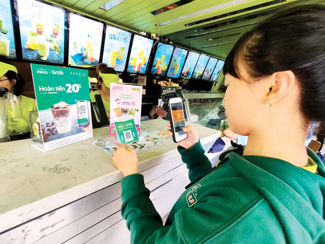 Không những thỏa mãn những nét văn hóa truyền thống, thanh toán qua điện thoại đang dần đi vào cuộc sống của người dân. Từ nhiều năm nay, chị Mỹ Kiều (32 tuổi, trú quận 6, TP.HCM) đẩy xe bán các loại nước trái cây tươi, nước ngọt đóng chai ở vỉa hè trên đường Bà Hom, quận 6. Cũng giống như bao chiếc xe bán nước ven đường khác, nhưng có thêm điểm đặc biệt là phía trên thực đơn nước dán cạnh xe đẩy là 3 cái nhãn dán mã vạch QR của Sacombank.