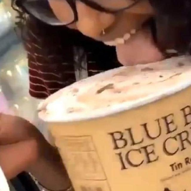 Theo đó, khi đi mua sắm ở siêu thị Walmart, cô gái này đã mở một hộp kem Blue Bell, liếm phần mặt của kem. Người quay lại video liên tục thúc giục cô gái: “Liếm đi, liếm đi. Cậu thật ngốc. Đặt nó lại đi”. Sau đó, cô gái cho lại hộp kem vali mà mình vừa liếm vào tủ đông lạnh.