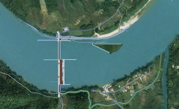 Phối cảnh 2D dự án đập thủy điện Sanakham tại Lào - Ảnh: mrcmekong